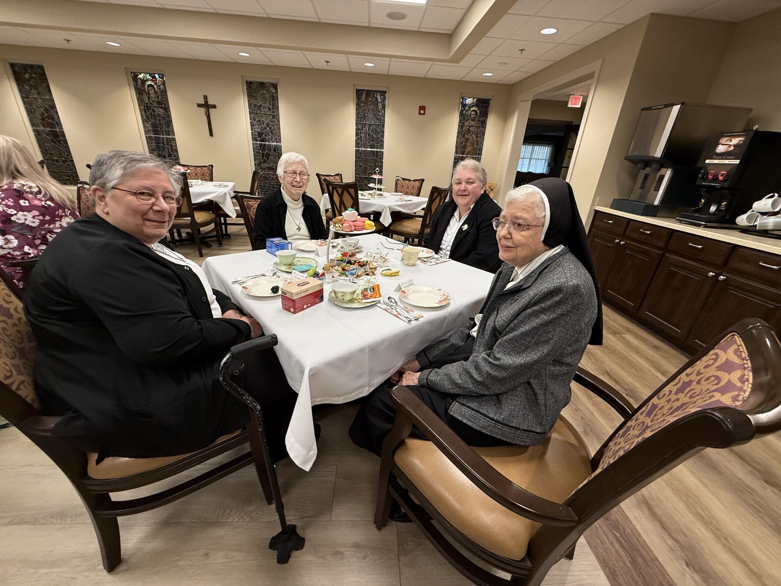The Sisters celebrated the feast of St. Scholastica on February 10, 2026, with a tea party. Special guests Mike Jones, his wife Nan, and their granddaughters attended a beautifully decorated tea. Jones and his wife…