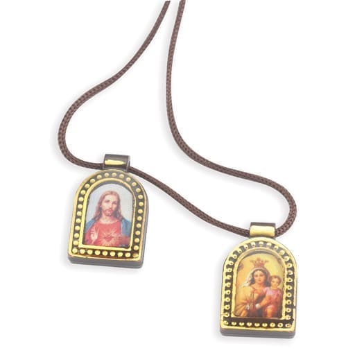 5/8" x 1" Plastic Scapular with Colored images and Gold accents on a 26" Cord.