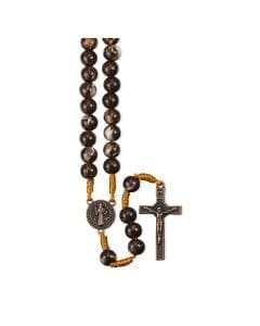 8mm Brown Round Marbleized Bead Rosary with a Saint Benedict Crucifix