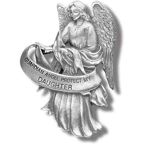 Guardian Angel – Protect my Daughter Genuine Pewter with Antique Finish, Hand Engraved Auto Visor Clip