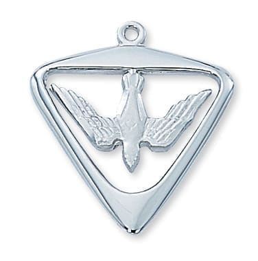 RHODIUM HOLY SPIRIT PENDANT AND 24" RHODIUM PLATED CHAIN.