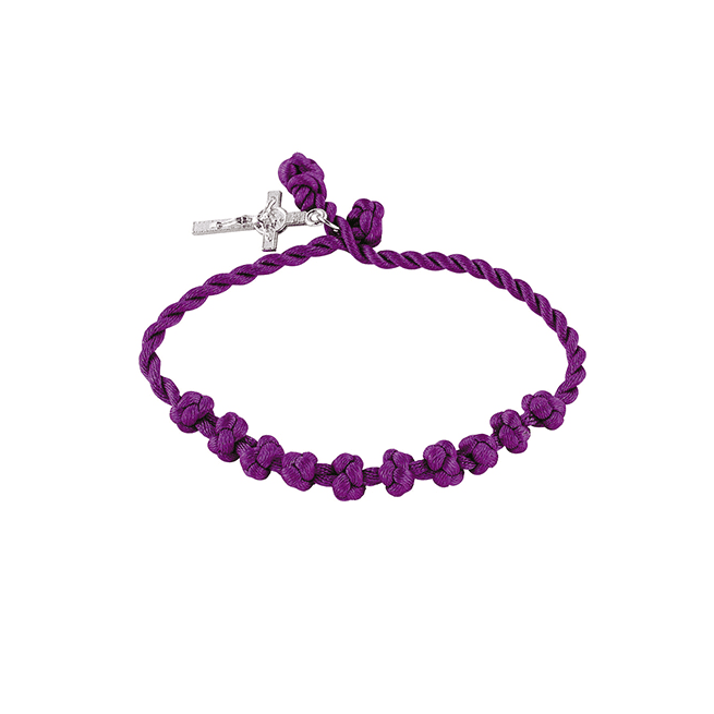 This simple knot rosary bracelet will be a great reminder not only to pray the Rosary during Lent, but to reflect on Jesus' ultimate sacrifice. Comes with a small crucifix and Miraculous Medal dangle.