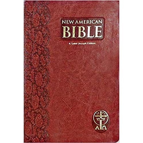 The Giant Type Edition of the St. Joseph New American (, Catholic) Bible from Catholic Book Publishing features, the largest type of any Catholic Bible in a comparable, size. Includes the complete Old and New Testaments in, Giant, easy-to-read 14-pt. type, notes at the end of, each book, footnotes, and full-color Land of the Bible, section. The focus in this edition of the St. Joseph, New American Bible is placed on the text, which is, arranged for easy reading. Other features in this giant, type Bible from Catholic Book Publishing include a, Presentation Page and Family Record. The complete text, of Vatican II's Constitution on Divine Revelation (Dei, Verbum) explains the Catholic Church's renewed regard, for Scripture reading by all faithful Catholics. This, magnificent Giant Type Edition of the St. Joseph New, American Bible from Catholic Book Publishing comes in, an easy-to-use 6-1/2 x 9-1/4 format, features gold page, edging, and is durably bound in flexible gold-stamped, brown imitation leather.