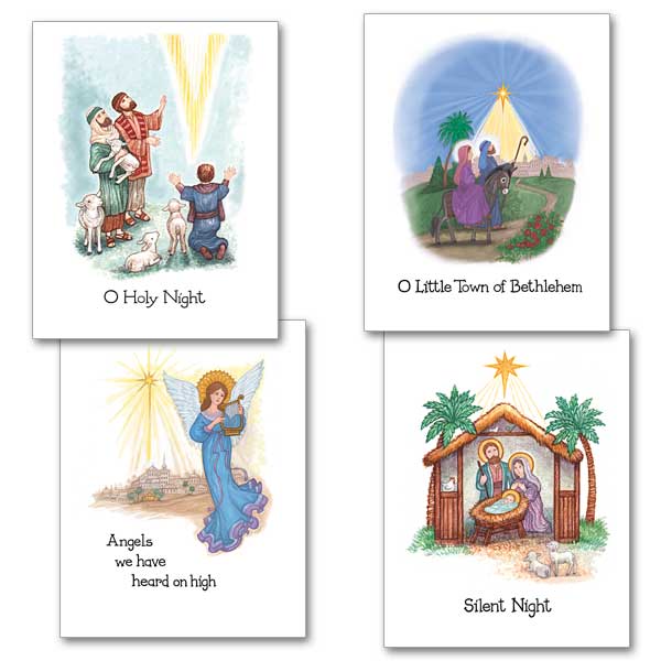 Share prayerful reflections on some of the most significant "moments" of the Nativity story with these delightfully simple notes. Printed on beautiful white stock with a textured finish. Gift boxed. 3 each of the 4 designs with envelopes.