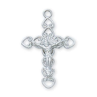 STERLING SILVER CRUCIFIX 18″ RHODIUM PLATED CHAIN