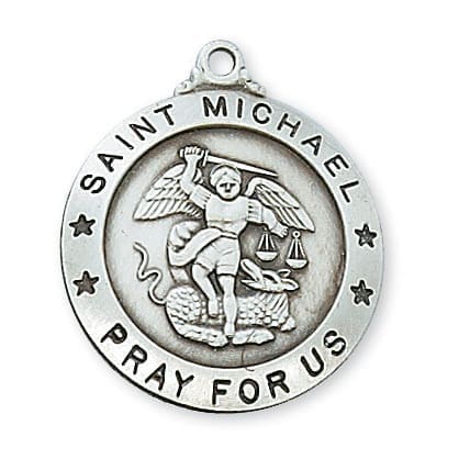 STERLING SILVER ST MICHAEL 24" RHODIUM PLATED CHAIN DELUXE GIFT BOX INCLUDED