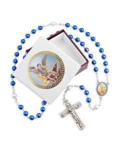 6mm Blue Glass St. Michael Rosary in decorative box.