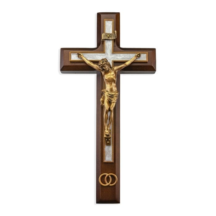 Wedding Crucifix, 10" Walnut Cross with Gold Corpus and Rings