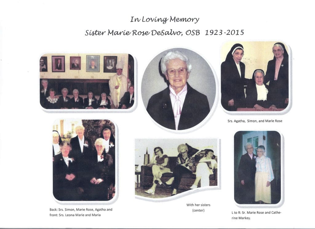 Memorial donations may be made to St. Scholastica Continuing Care Fund, P. O. Box 3489, Fort Smith, AR 72913. Donate In Sr. Marie Rose DeSalvo’s Memory